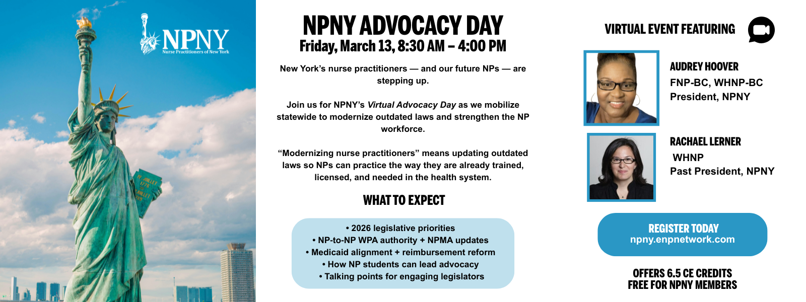 Join NPNY for our Virtual CE presentation on Friday, March 13, 2026 Audrey Hoover, MS, FNP-BC, WHNP and Rachael Lerner, MS,...
